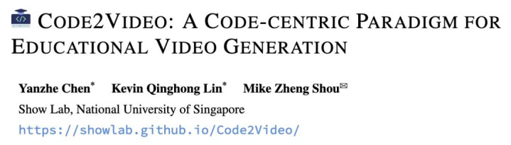 标题:Code2Video: A Code-centric Paradigm for Educational Video Generation